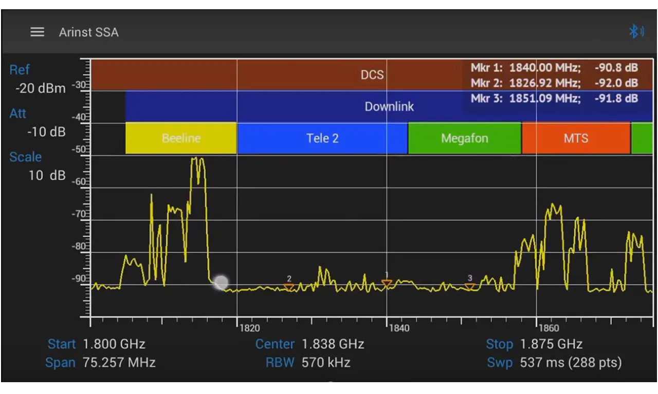 Он предназначен для отображения спектра сигналов в диапазоне частот от 25 до 5999 МГц. Arinst SSA позволяет определить амплитуду и частоту сигнала.